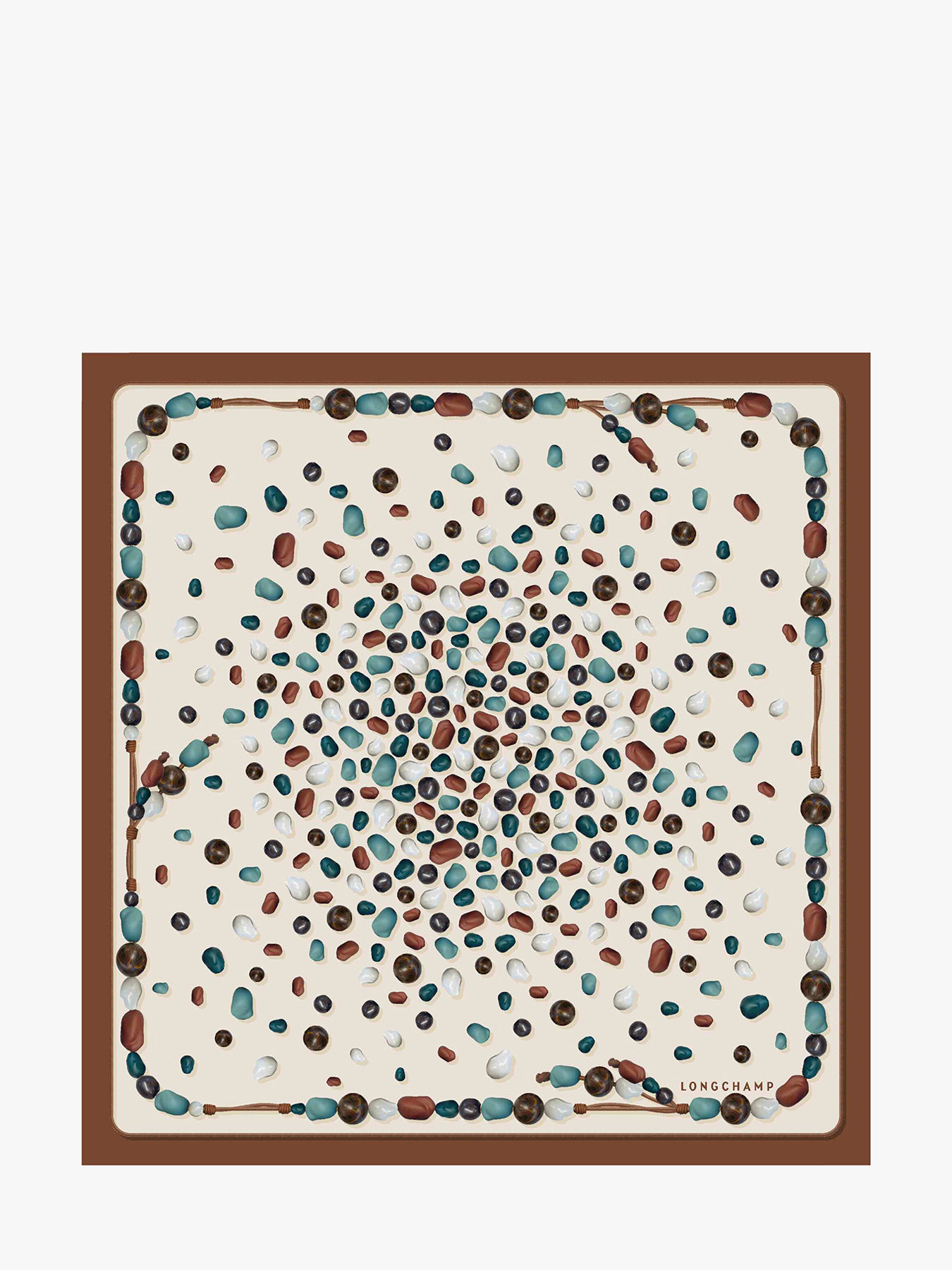Le carré de soie 50x50 cm « Perles de Paris » s’inspire de l’univers poétique et minutieux de la céramique. Son imprimé révèle un enchevêtrement délicat de perles aux formes organiques, déclinées dans des teintes douces et harmonieuses. Encadré avec soin par des perles nouées à la main sur un fin cordon, ce foulard rend hommage à l’art artisanal des céramistes. Léger et raffiné, il apporte une touche d’élégance subtile à vos tenues, se portant aussi bien autour du cou, dans les cheveux, ou noué aux anses de votre sac selon vos envies et votre style.