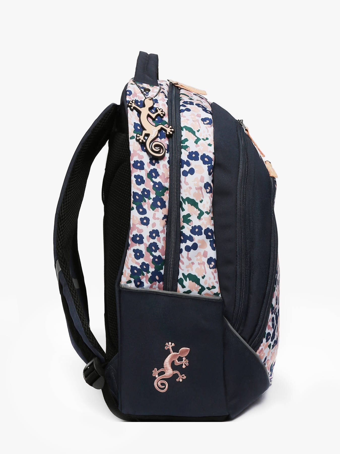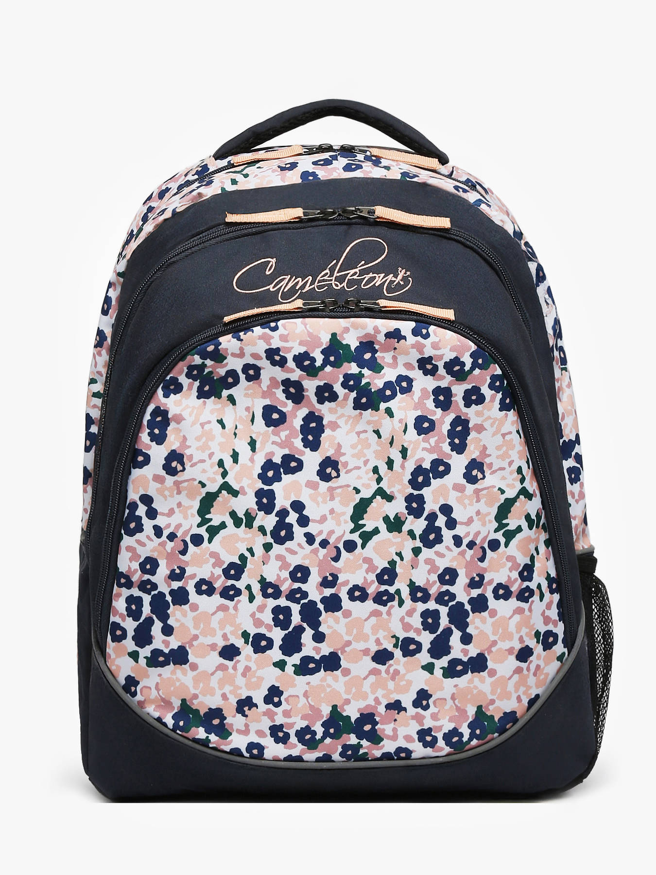 Pratique, il bénéficie d'une petite poche intérieure simple ainsi qu’un organisateur de stylos dans le premier compartiment. À l’intérieur du deuxième compartiment se trouvent une grande poche simple et un séparateur pour trier ses cahiers et livres. À l’extérieur, deux poches filets latérales permettent un rangement supplémentaire, dont une spécialement conçue pour y glisser une gourde.