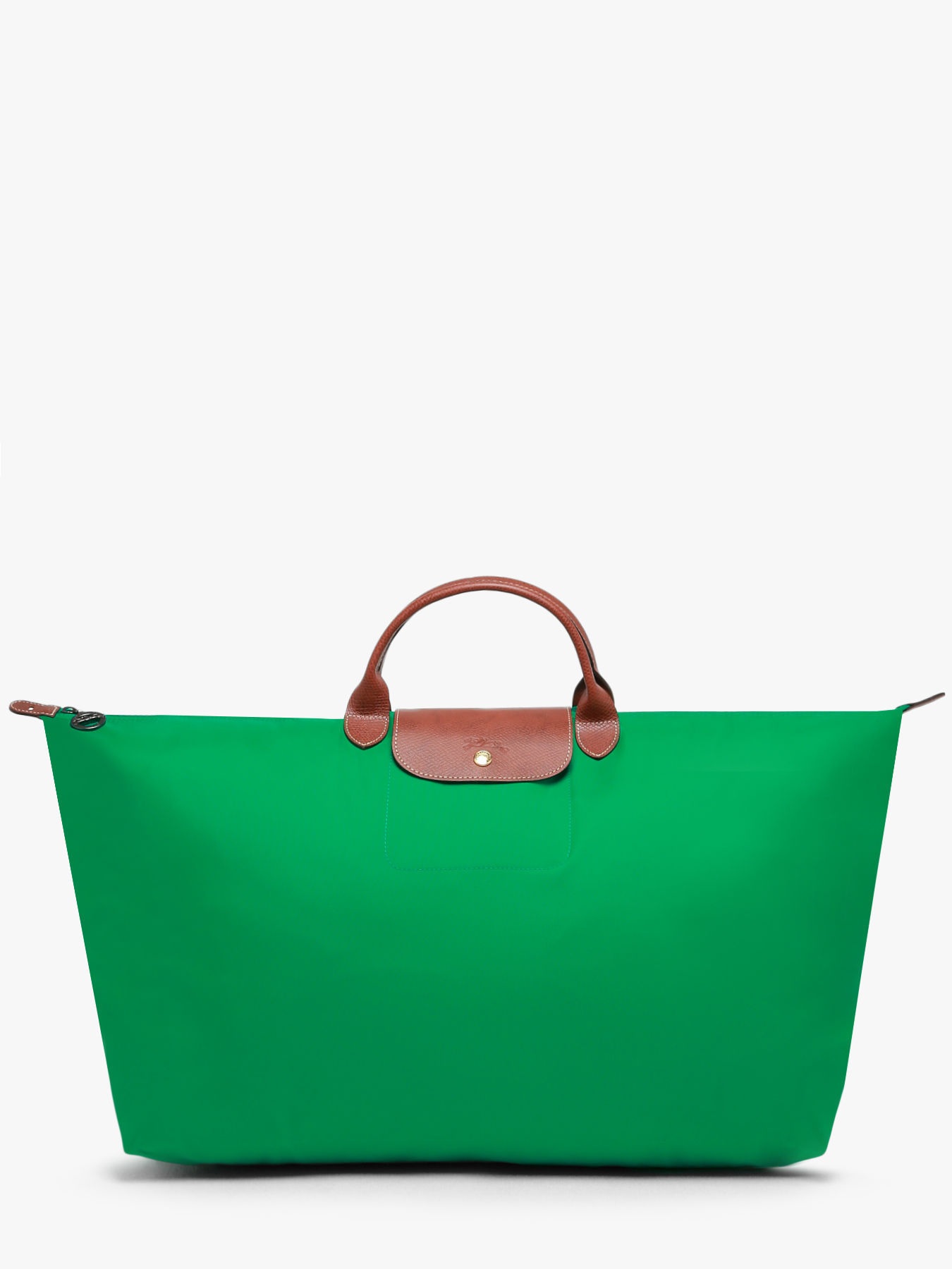 Fermez ce sac de voyage Le Pliage Longchamp à l'aide d'un zip ainsi que d'un rabat à pression et portez-le à la main.