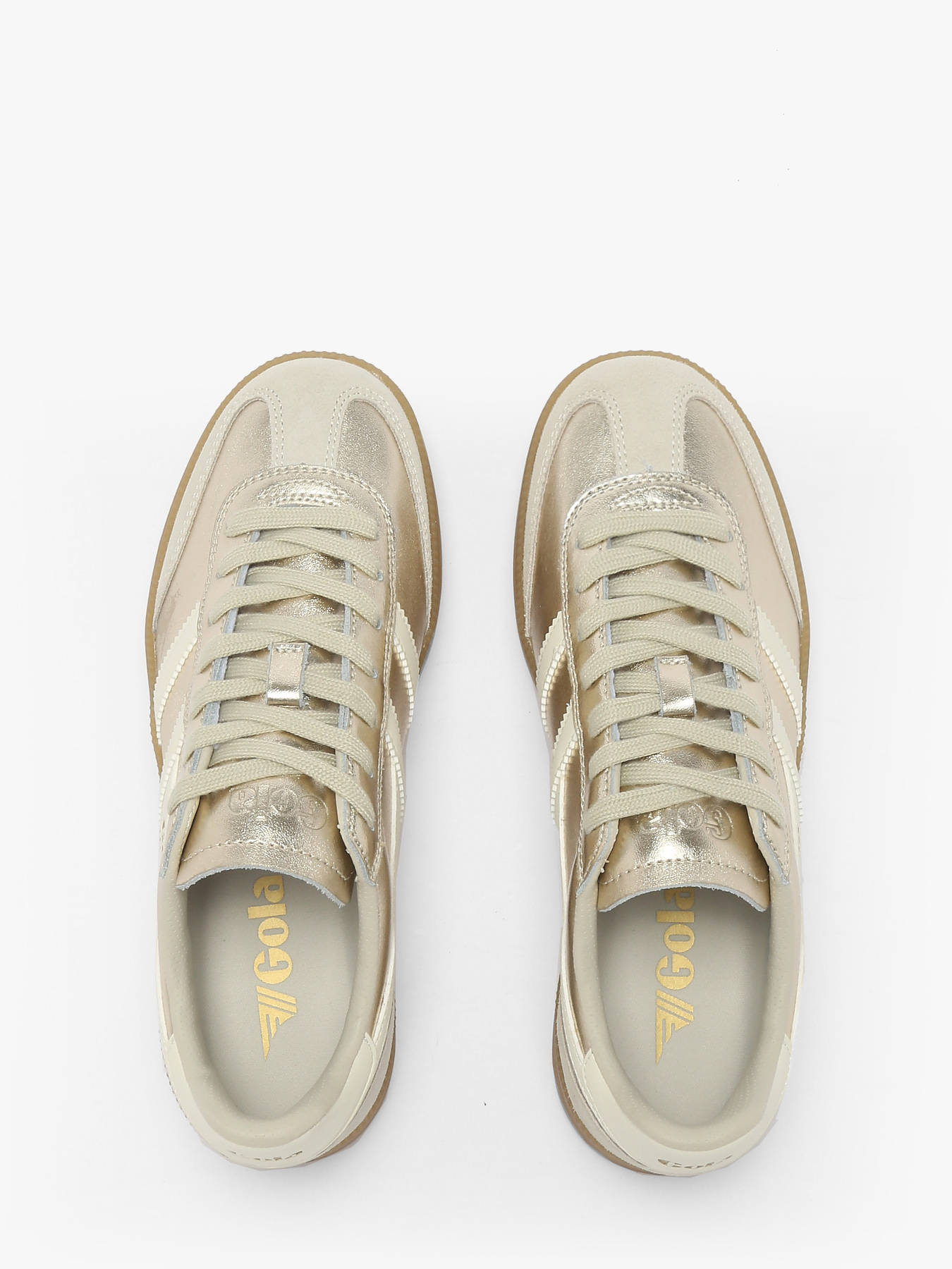 Les sneakers Viper Metallic pour femme de GOLA font leur grand retour après leur première apparition en 1976. Elles associent une silhouette élégante en cuir doré à un bout en T court et une semelle en caoutchouc pour un style rétro revisité. Leur design est sublimé par un empiècement latéral blanc cassé « wingflash », apportant une touche chic et moderne. Avec leurs détails métalliques raffinés, ces baskets sont idéales pour celles qui aiment les tons argentés, dorés ou champagne. Alliant confort, style et héritage vintage, les Viper Metallic sont un modèle incontournable pour une allure urbaine et tendance.