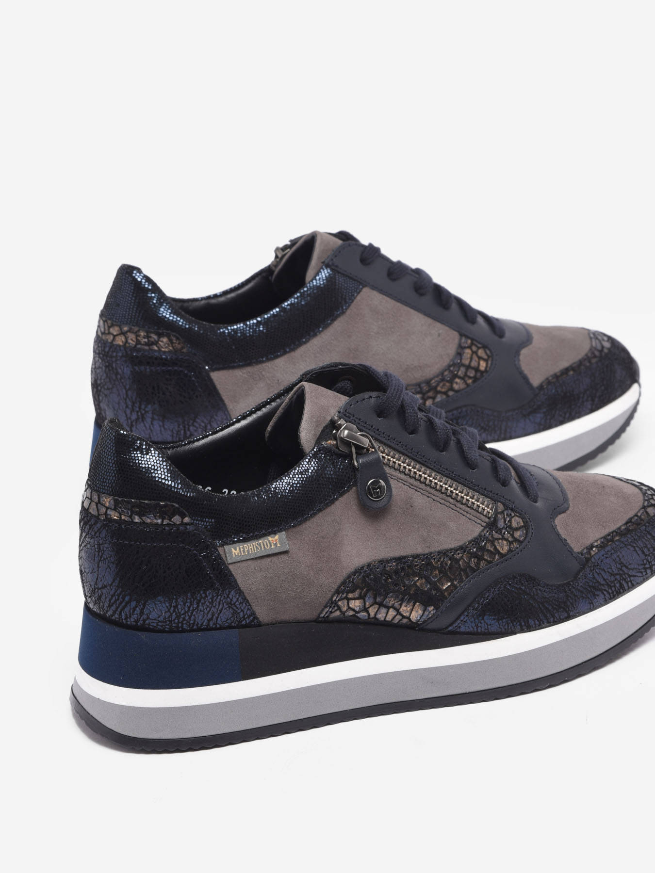 Ces sneakers Mephisto tendance offre un confort optimal et un excellent chaussant. La semelle intérieure amovible qui intègre la technologie SOFT-AIR et la semelle extérieure en caoutchouc de 4,5 cm dotés du SHOCK-ABSORBER, réduit les impacts au minimum et garantit une marche souple et sans fatigue. Avec la technologie AIR-RELAX, l'anatomie du pied est respectée afin d'éviter l'affaissement de la voûte plantaire. En plus du laçage, elle est facile à chausser grâce à sa fermeture à glissière latérale. La doublure en cuir offre un climat sain à l'intérieur de la chaussure. Ces chaussures femme de hauteur de tige de 7 cm sont composées de cuir effet métallisé sur l'ensemble du pied avec des empiècements en cuir effet métallisé imprimé imitation animale et en cuir effet métallisé pailleté, qui donne un style brillant et chic.